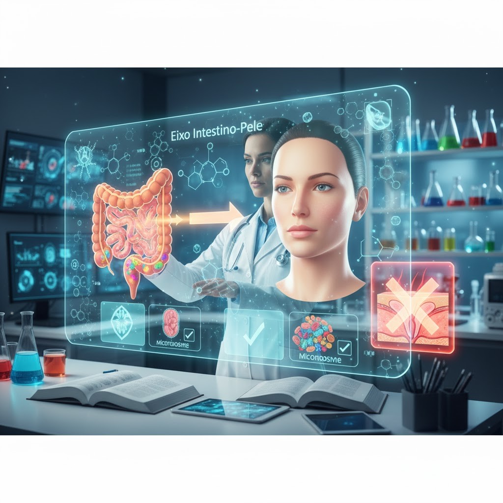Sofre com acne, rosácea ou dermatite? A causa pode estar no seu intestino. Entenda a ciência do eixo intestino-pele e como tratá-lo com ozonioterapia e saúde integrativa. Palavras-chave: Eixo intestino-pele, microbiota intestinal, acne e intestino, rosácea tratamento, disbiose intestinal, ozonioterapia intestinal.